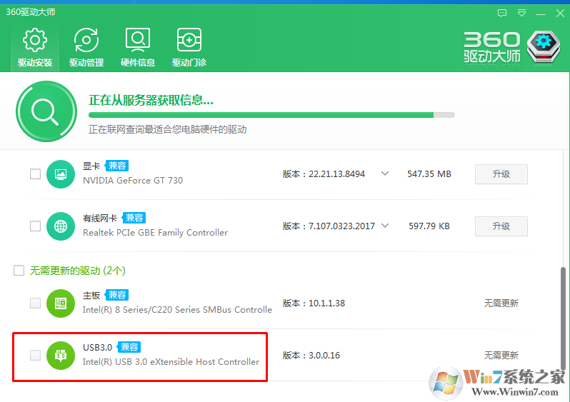 解決方法:從對應(yīng)品牌主板官方下載USB控制器驅(qū)動程序,可使用360驅(qū)動大師或驅(qū)動精靈進(jìn)行智能更新安裝。
