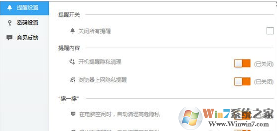 打開隱私清理,設(shè)置關(guān)閉自動(dòng)清理隱私等選項(xiàng)