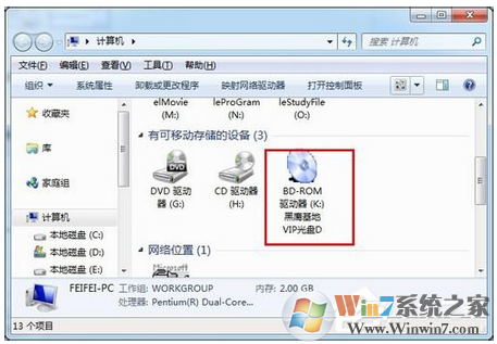 7.此時(shí)查看”我的電腦“,就會(huì)發(fā)現(xiàn)已經(jīng)成功虛擬出一個(gè)新的光驅(qū)盤符。然后就可以像物理光驅(qū)一樣使用虛擬光驅(qū)了。