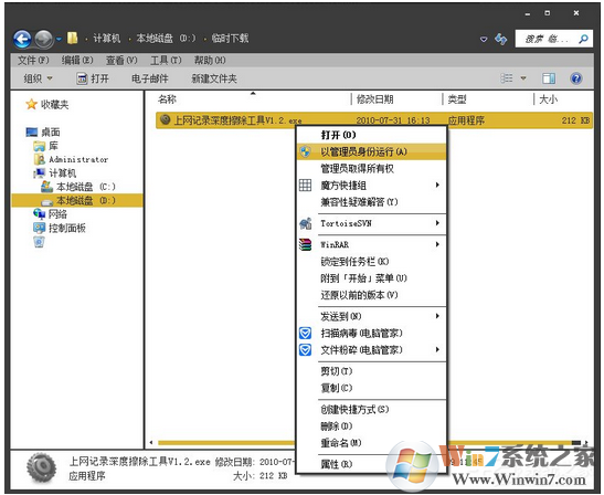 4、解壓并以管理員權(quán)限運(yùn)行“上網(wǎng)記錄深度擦除工具”程序。