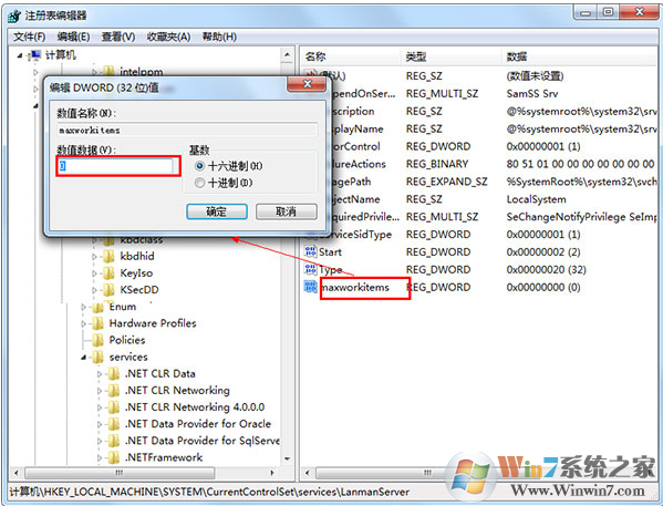 4、然后雙擊該值,在打開的窗口中鍵入下列數(shù)值并保存退出。如下圖所示。