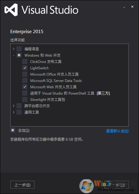 一:功能勾選:windows和web開發(fā)相關(guān)。