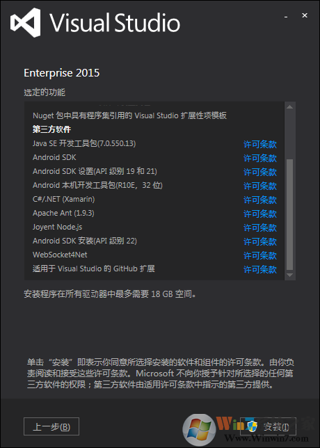 在沒勾選跨平臺(tái)和通用的時(shí)候還只要8G的空間,勾選后,得18G,還要c盤留的空間夠,看來跨平臺(tái)這塊真的是混搭啊,各種環(huán)境的集成。