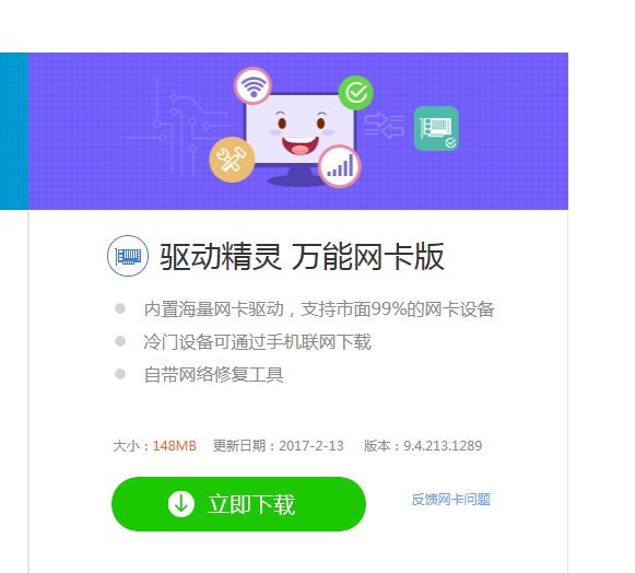 需要準(zhǔn)備的工具是可以上網(wǎng)的電腦、一個(gè)最少剩余300mb空間的u盤,如果家里有2臺電腦的就可以,沒有就得出去找個(gè)能上網(wǎng)的地方,到驅(qū)動(dòng)精靈官網(wǎng)上集成網(wǎng)卡版本的如下圖
