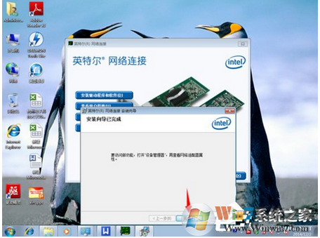 6、網(wǎng)卡驅(qū)動(dòng)安裝完成后,彈出如下圖所示界面,同時(shí)可以發(fā)現(xiàn)桌面右下角的上網(wǎng)圖標(biāo)的差號標(biāo)志消失了,出現(xiàn)下圖所示的標(biāo)志后即可以正常上網(wǎng)嘍。
