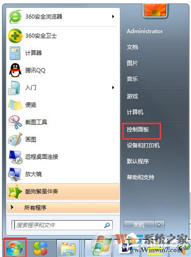 2.點(diǎn)擊計(jì)算機(jī)的開(kāi)始按鈕,打開(kāi)控制面板。如果開(kāi)始菜單中找不到控制面板