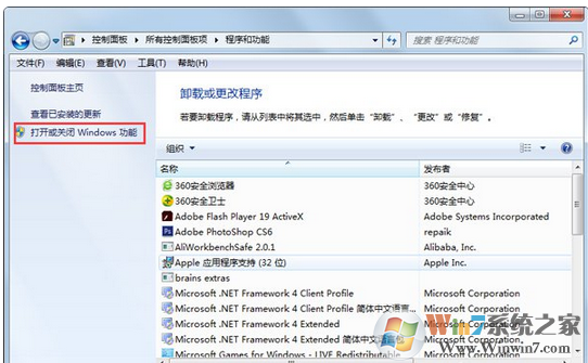 4.在左上角那點(diǎn)擊打開(kāi)或關(guān)閉windows功能。