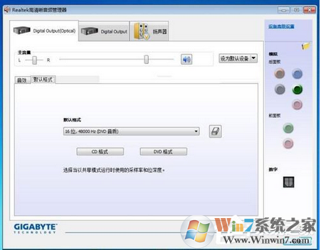 4、這樣我們的基本設(shè)置就好了,管理器就能識(shí)別我們的設(shè)備了。下來(lái)就是在這個(gè)界面中對(duì)我們的音頻輸出做各種設(shè)置了,界面相對(duì)簡(jiǎn)單,并且是中文的,字面意思就知道是什么功能的,這里不再贅述。