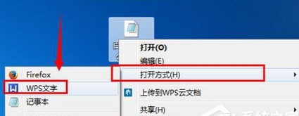 如本例中,我們的文件是doc文件。一般是office word文件,可以使用word或wps等來打開??梢酝ㄟ^文件---- 打開方式,選擇wps打開。