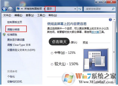 步驟二在彈出的窗口上找到“顯示”按鈕點(diǎn)擊它然后在繼續(xù)下一窗口上點(diǎn)擊【調(diào)整分辨率】按鈕如圖所示