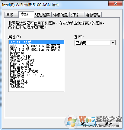 2、如果無線網(wǎng)卡的型號上面沒有標注規(guī)格,也可以打開無線網(wǎng)卡的高級屬性看看,里面一般都會有相應字段標明。
