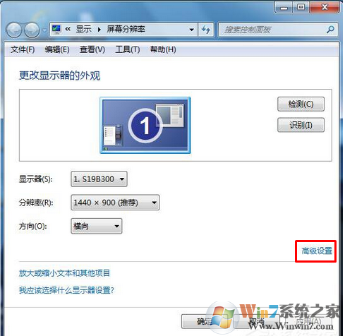1、打開【更改顯示器的外觀】窗口,單擊【高級設(shè)置】鏈接。