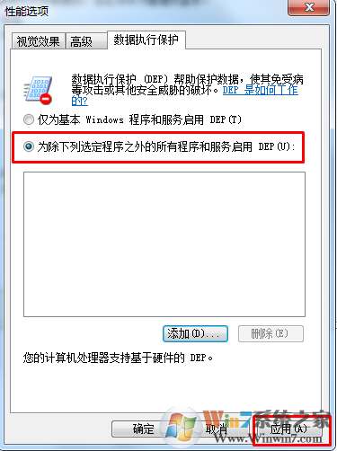 【數(shù)據(jù)執(zhí)行保護(hù)】--選擇除下列之外的程序執(zhí)行保護(hù),不要添加任何程序即可