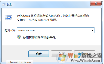 1、按Win+R組合鍵,彈出“運(yùn)行”對(duì)話框,輸入services.msc。