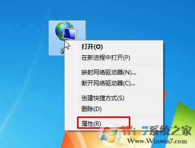 1、右鍵點(diǎn)擊桌面上的“網(wǎng)絡(luò)”圖標(biāo),選擇屬性;