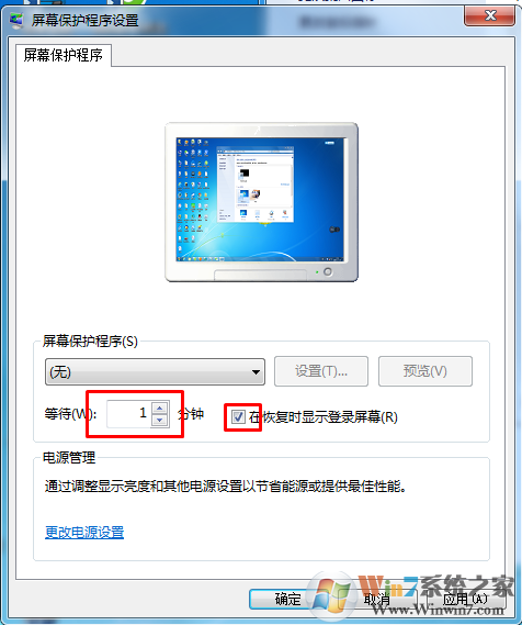 2、任意選擇一個屏幕保護程序,把“在恢復時返回到歡迎屏幕”前的復選框上打鉤。要是覺得時間太短了可以將時間設(shè)置在3分鐘以上,因為我們自己坐著不操作電腦的時候很多時候都是超過幾分鐘的。1分鐘就鎖屏,還要解鎖一下還是很麻煩的。