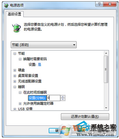 4、把在此時間后睡眠的時間更改為0。
