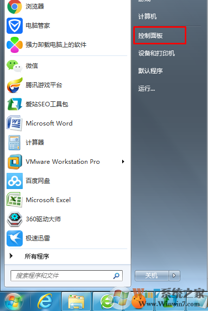 1、 點(diǎn)擊開(kāi)始菜單,然后點(diǎn)擊“控制面板”;