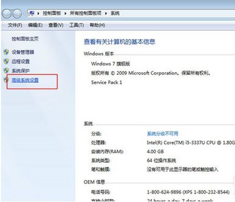 2、然后點擊頁面的左方的“高級系統(tǒng)設(shè)置”;