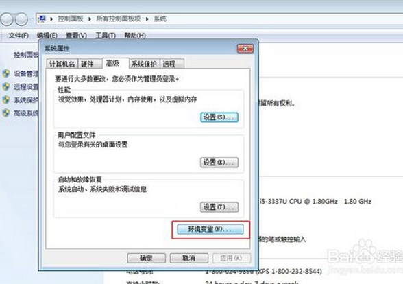 3、在彈出的對話框里面點擊“環(huán)境變量”;