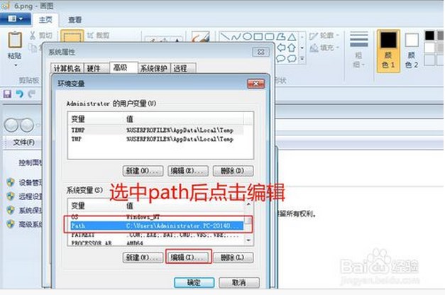 4、隨后在彈出的窗口里,找到系統(tǒng)變量里的“path”—點擊“編輯”;