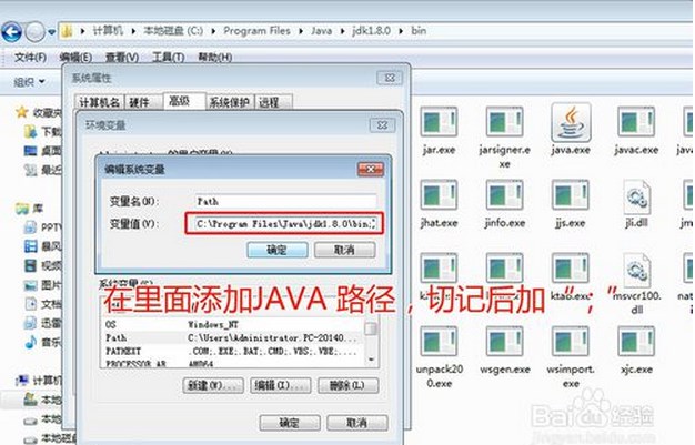 5、然后把我們下載的jdk的bin文件路徑復(fù)制過來,添加到“變量值”的最前面,然后點擊確定即可;