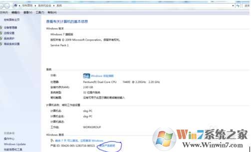 1、首先打開計(jì)算機(jī)屬性,然后點(diǎn)擊下方的更改產(chǎn)品密鑰;