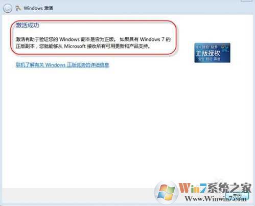 7、最后出現(xiàn)激活成功的界面,現(xiàn)在你的Windows7已經(jīng)是“正版授權(quán)”了~~~