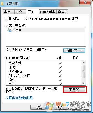 1、右鍵點擊要操作的方法或文件夾,選擇屬性-安全—高級按鈕;