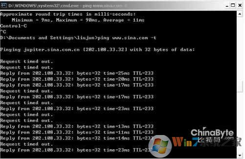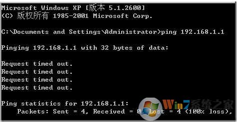 如果ping 192.168.1.1 出現(xiàn) Request timed out 那么表示ping不通,電腦和路由器的連接有問(wèn)題,或者網(wǎng)絡(luò)中不存在192.168.1.1這個(gè)地址,也許你的路由器不是這個(gè)地址。Win7系統(tǒng)之家 m.cncxm.com