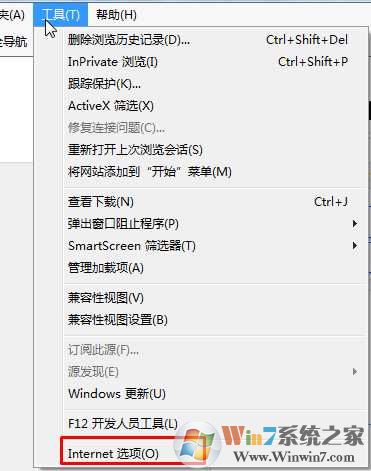 1、打開(kāi)IE瀏覽器,然后點(diǎn)擊 工具—internet選項(xiàng),如下圖: