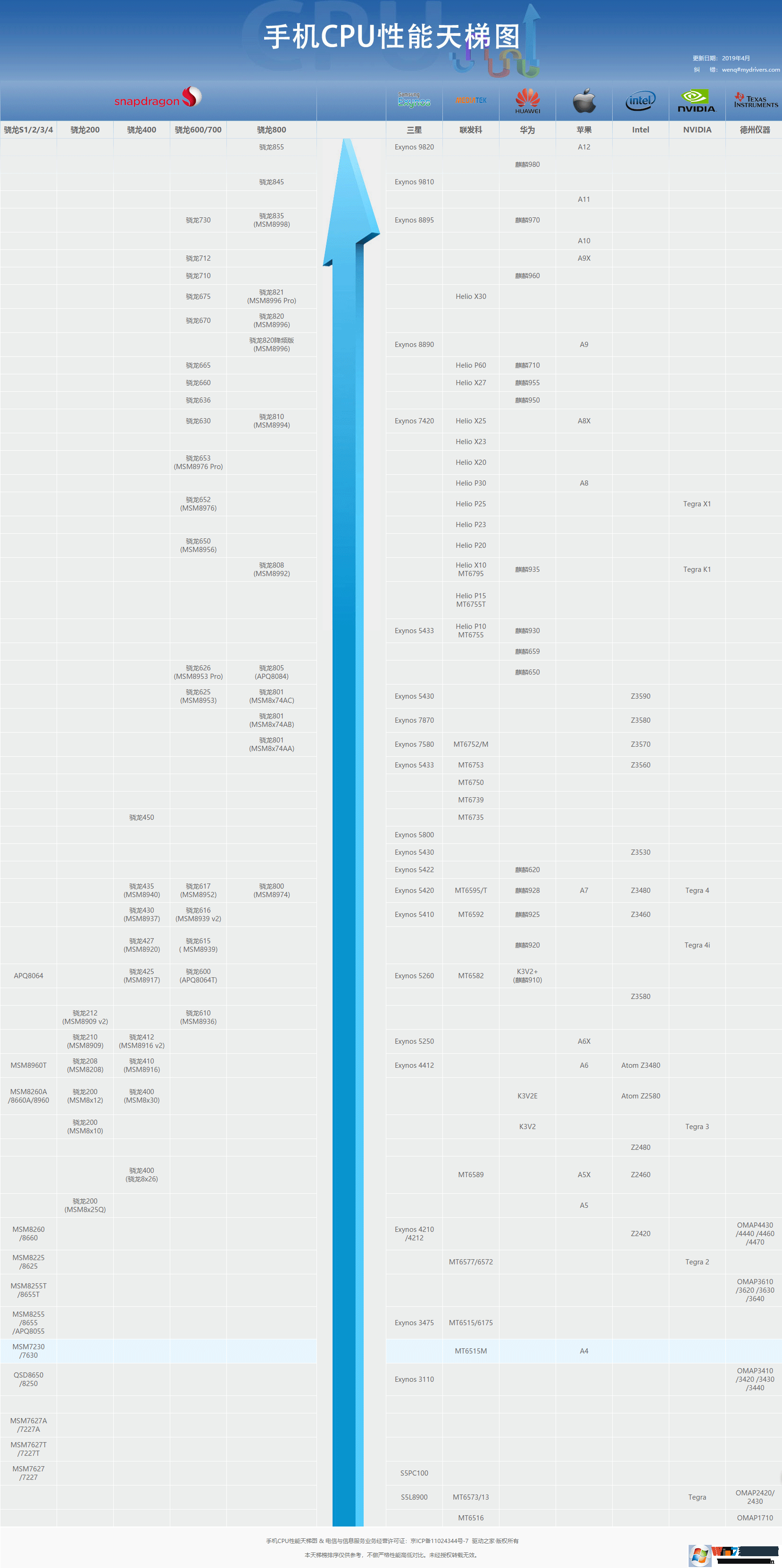 | 手機(jī)CPU天梯圖2019年6月 | |||||