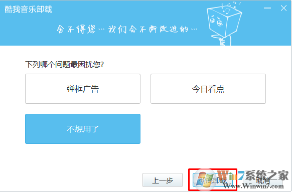 2、在彈出的窗口中選擇卸載后點(diǎn)擊下一步。
