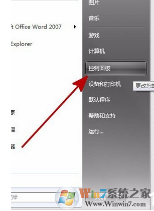 2、鼠標(biāo)左鍵單擊選擇“控制面板”。