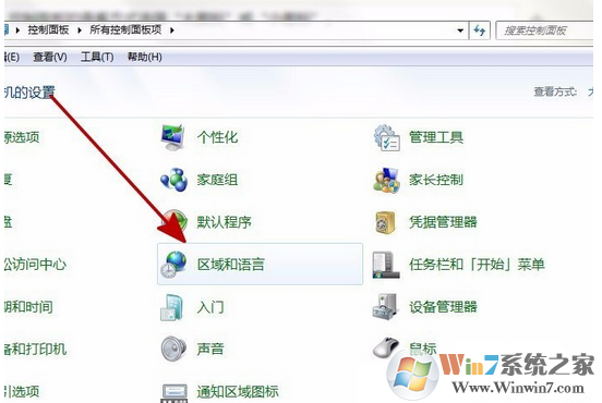 4、選擇“區(qū)域和語言”點(diǎn)擊打開。
