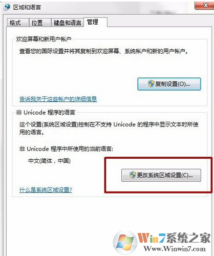 7、如果不是,點(diǎn)擊“更改系統(tǒng)區(qū)域設(shè)置”。