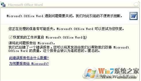 不管是使用Word2003還是Word2007都有用戶遇到Word打不開發(fā)送錯(cuò)誤報(bào)告的問題,這讓用戶很不爽,那么如何徹底解決這個(gè)問題呢?下面小編給大家整理了絕對(duì)對(duì)用的方法,大家可以按下面方法來修復(fù)Word打不開發(fā)送錯(cuò)誤報(bào)告的問題。