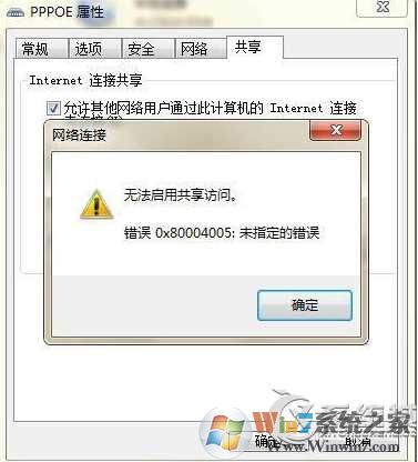 如下圖:無法啟用共享訪問 錯誤0x80004005,未指定的錯誤