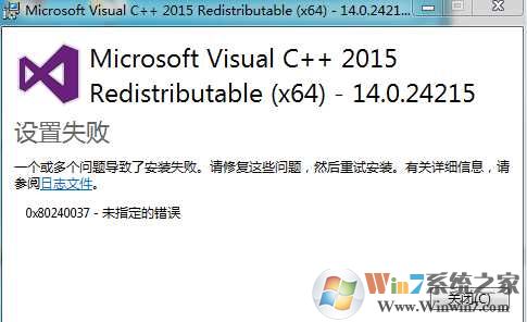 上述就是小編和大家分享的Win7 64位系統(tǒng)VC++2015安裝失敗80240037解決方法