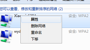 3、在管理無(wú)線網(wǎng)絡(luò)界面,選中你所用的無(wú)線網(wǎng)絡(luò),右鍵點(diǎn)擊屬性,打開(kāi)無(wú)線安全界面,然后切換到【安全】選項(xiàng)卡,勾選顯示字符,你就能看到你你的無(wú)線密碼了。如下圖;