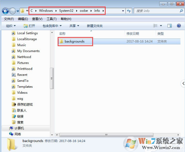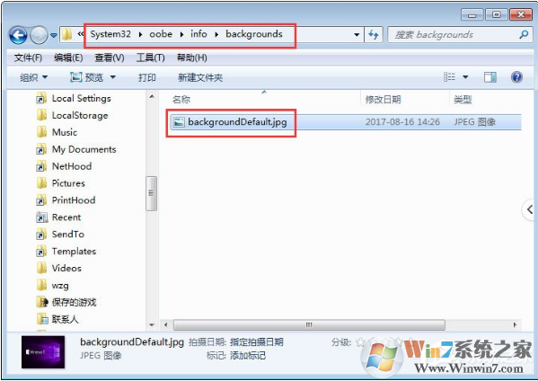 5、將你想設(shè)置的背景圖片設(shè)為1024×768像素大小,并且為JPG格式,然后將調(diào)整好的背景圖片保到“C:\Windows\System32\oobe\info\backgrounds”;命名為backgroundDefault.jpg;如下圖所示: