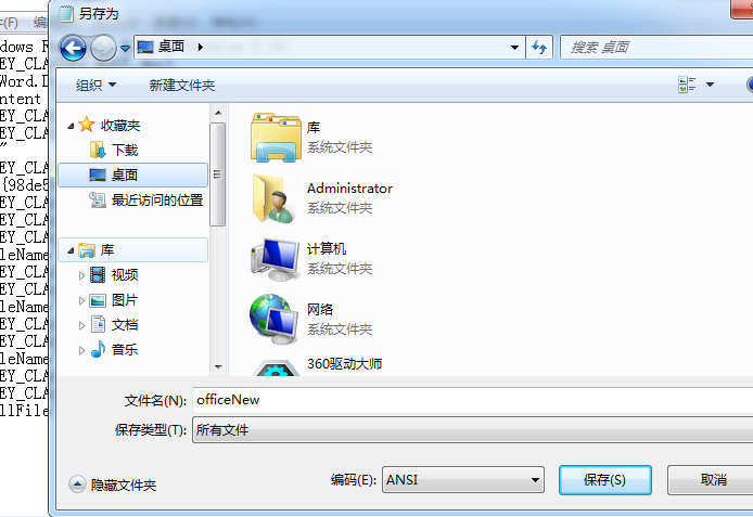 2、然后點擊記事本上菜單上的文件——另存為,格式選擇所有文件,保存為 OfficeNew.reg