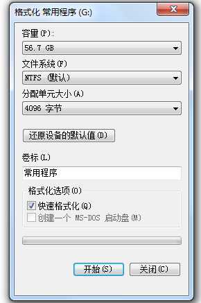 ③然后在彈出的窗口下勾選“執(zhí)行快速格式化”,之后點“確定”即可強行格式化。如下圖所示:
