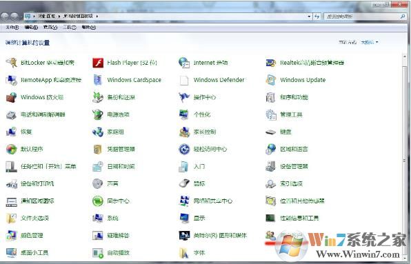 2、把控制面板的查看類型設(shè)置為小圖標(biāo),這樣更利于我們找到用戶帳戶控制的選項,找到“用戶賬戶”,一般來說都在控制面板右下角;