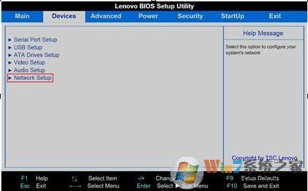 如是因為BIOS中沒有開啟網(wǎng)卡導致的,我們需要在BIOS中開啟網(wǎng)卡。由于BIOS界面多種多樣,選項各不相同,這里只簡介一種,大家參照著設置。