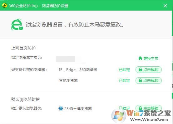 正常類軟件:各種殺毒軟件或衛(wèi)士,在設(shè)置中可以查看到是否鎖定首頁;