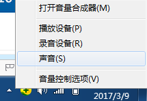 1、桌面右下角聲音圖標、右鍵選擇聲音