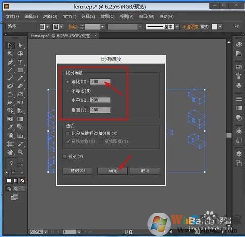 5、鼠標發(fā)于矢量錨點上,右擊》變換》縮放---出現(xiàn)以下界面,然后修改比例,預覽。調(diào)到合適為止。點擊確定。