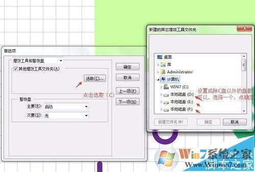 5、然后選取一個除了C盤以外的盤作為暫存盤,這里我選擇D盤