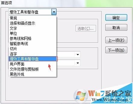 3、點開常規(guī)下拉列表中選中“增效工具和暫存盤”